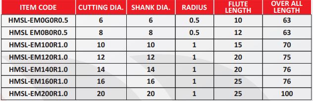 BALLNOSE AND CORNER RADIUS ENDMILLS