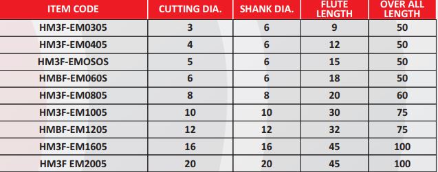 FOR SOFT METAL SOLID CARBIDE END MILLS - REGULAR SERIES SQUARE END 3 FLUTE 45 FLELIX